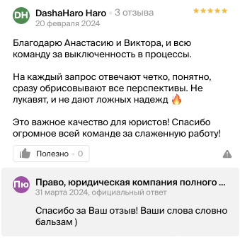 Отдельно при необходимости оплачиваются государственные пошлины, проведение экспертиз, услуги нотариуса и т.д. ( о необходимости данных расходов мы говорим на консультации).